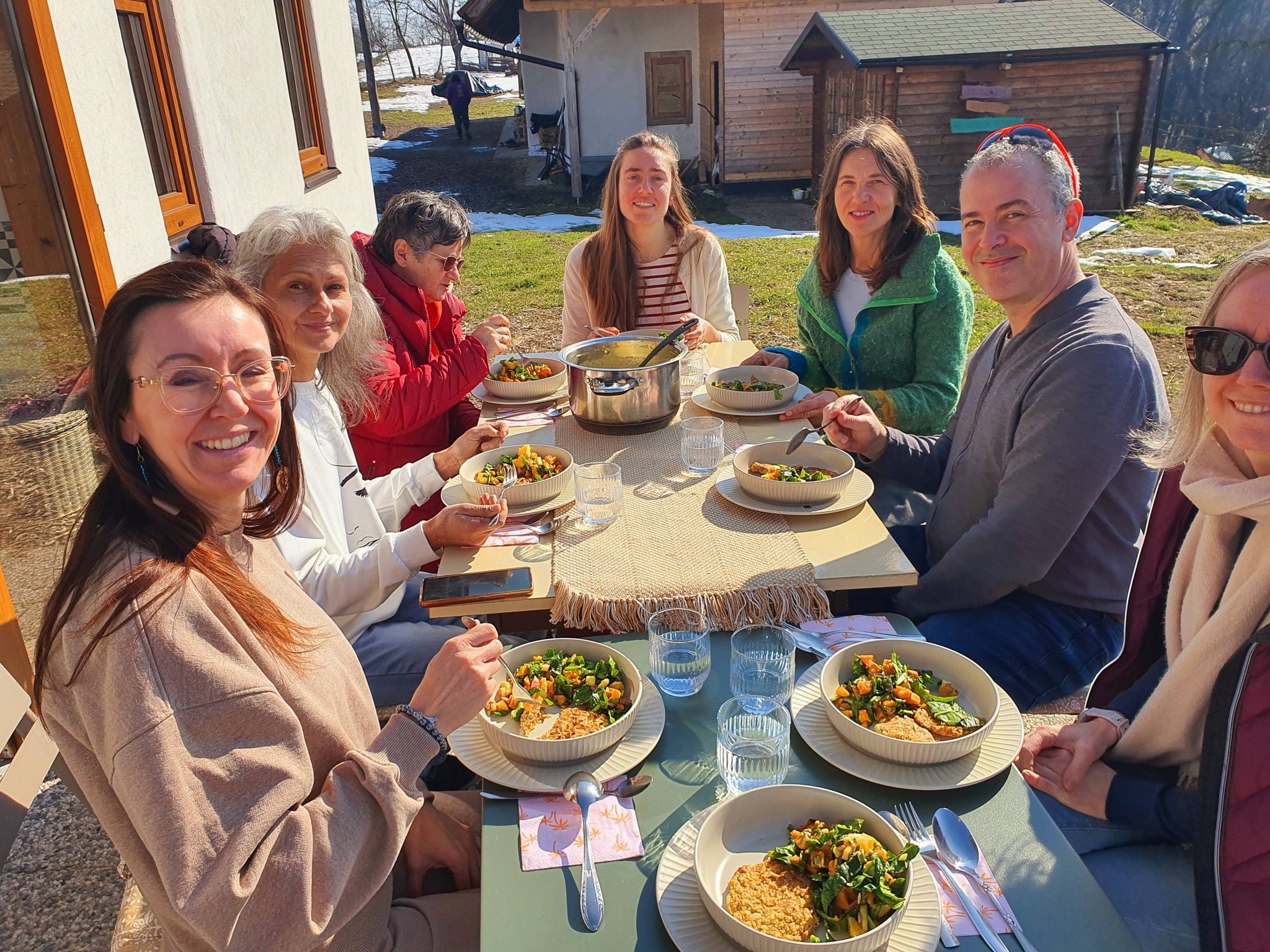 Vreme je bilo odlično, po delavnici nam je vodja centra Paula Vouk naredila predstavitev VEGANSKEGA KOSILA in nas tudi okusno nahranila.
