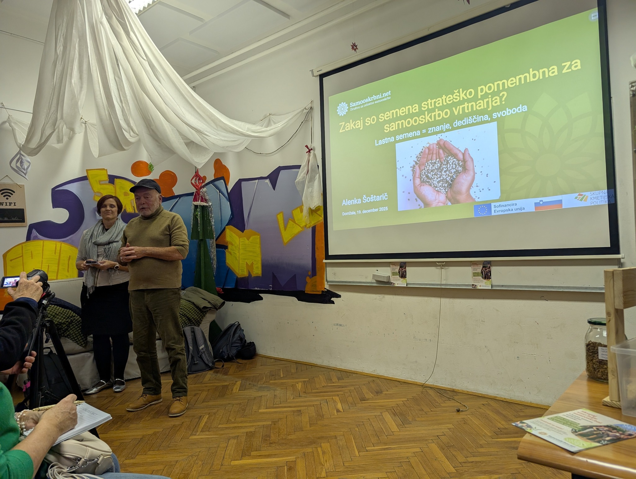 Odlično predavanje naše Alenke Šoštarič v Domžalah na temo zakaj so semena strateškega pomena za našo samooskrbo. Vse premalo se zavedamo DRAGocenosti domačih semen, Anton Komat pa pravi: brez semen nisi suveren!