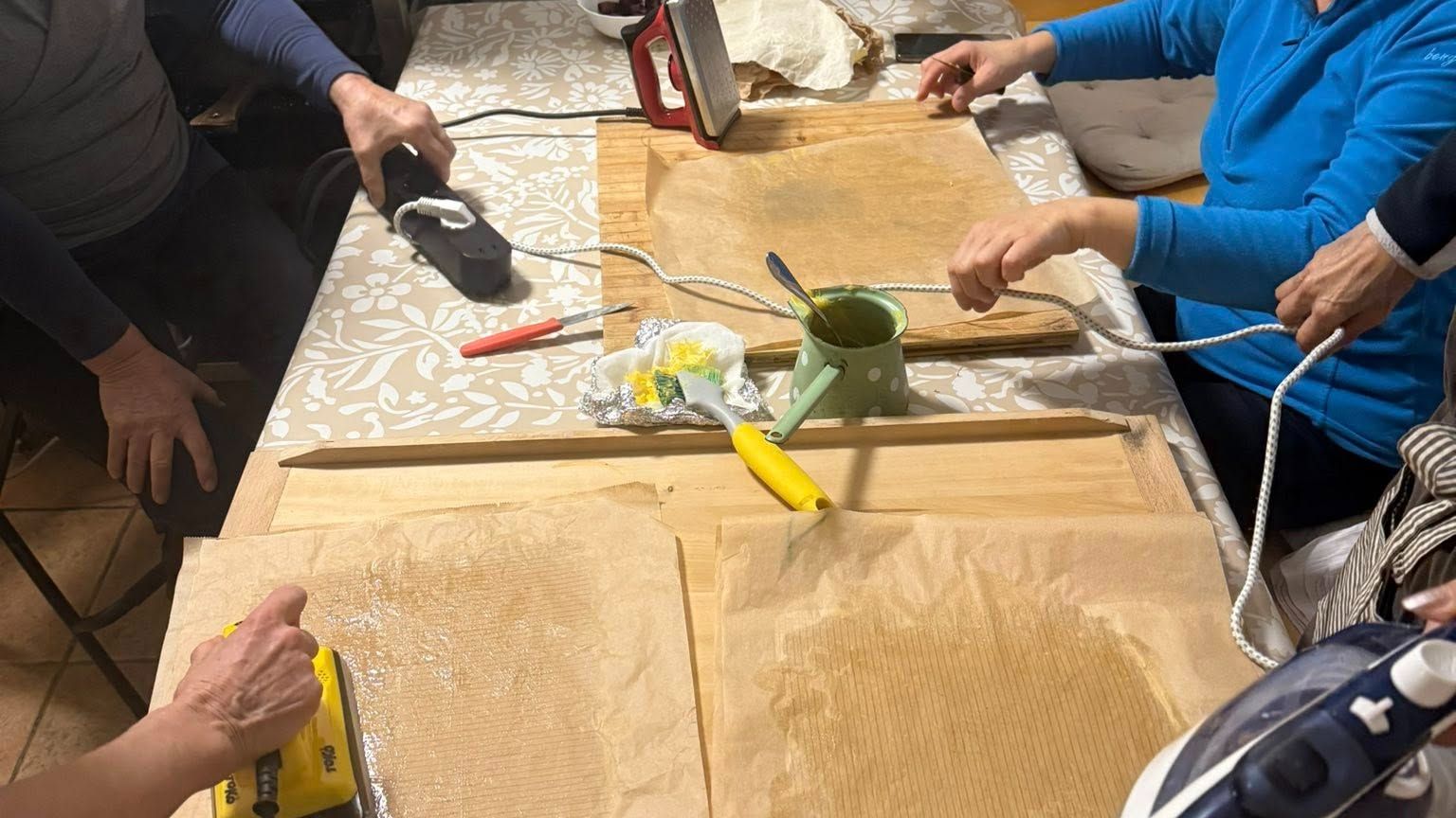 Mentorica Mateja Reš piše: "Spet smo bili povezani v akciji. In seveda konstruktivni debati. Podaljšati bi morali kaki dve uri da bi lahko naredili plan. Tako pa imamo plan že za naslednjič. Očistili smo veliko skledo motovilca in brstični ohrovt. Fermentirat smo dali česen in limone. Posebej. Naredili smo voščene krpe, nadomestek folije za živila. Nekaj packarije s tem je in tudi peki papirja smo kar precej porabili. A tudi veliko krp povoščili. Tako je ostal čas le še za skupni obed.